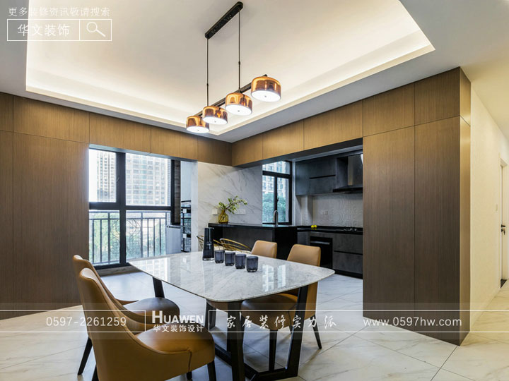 ▲ 餐厨一体设计现代风格浓郁,同时也满足屋主中西厨需求,由于整块区域空间较大,设计师用KD板全包避免单调也营造一种温馨感。