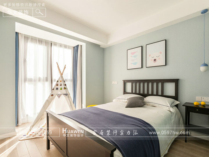 ▲ 清新的蓝色调作为屋主儿子房间的主色调营造清爽的氛围,细腻温和的视觉感受也与女儿房如出一辙,希望屋主家小朋友都可以拥有快乐多彩的童年。
